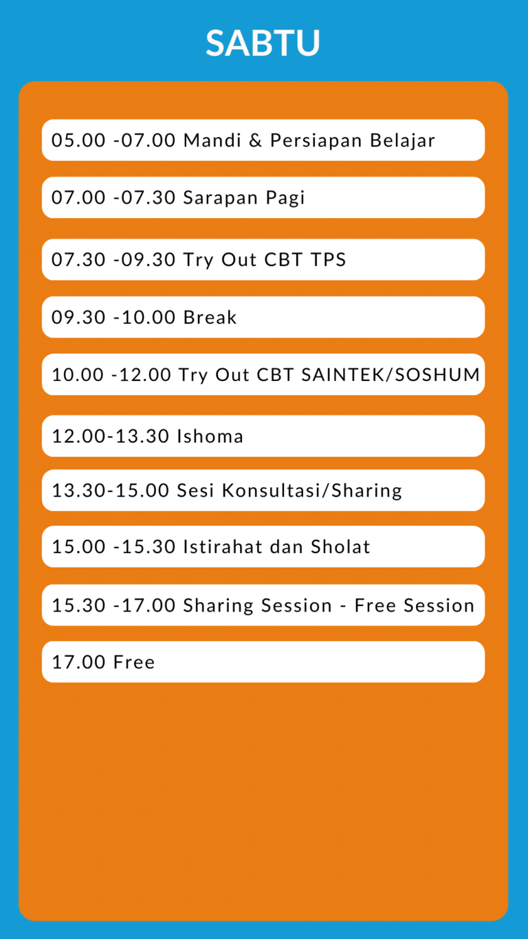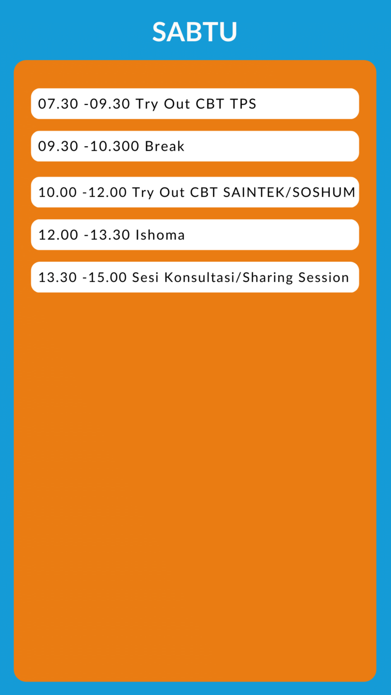 Senin-Jumat 09.00-15.30Try Out Online berbasis CBT